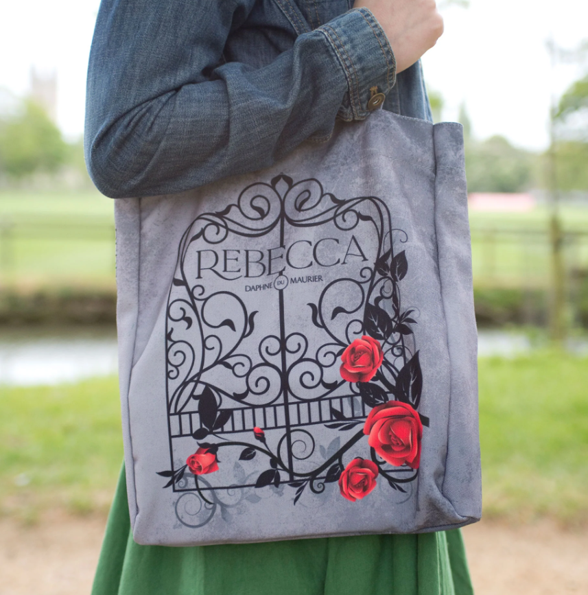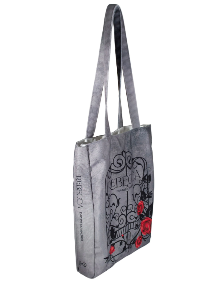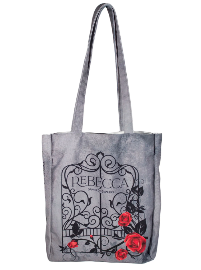 Deze prachtige draagtas bevat de klassieke gotische roman van Daphne du Maurier, Rebecca. De tas is ontworpen met een sierlijke poort bedekt met rozen tegen een prachtige grijze achtergrond. Op de achterkant van de tas staat de quote ‘last night I dreamt I went to Manderley again’. Perfect om al je dagelijkse benodigdheden in stijl mee te nemen!